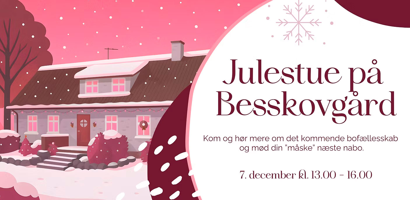 Drømmer du om et liv med mere fællesskab, nærvær og hverdagsglæde? Så kom til julestue på Besskovgård, hvor vi åbner dørene og inviterer indenfor til en eftermiddag fyldt med hygge – og muligheden for at møde dem, der måske bliver dine fremtidige bofæller.