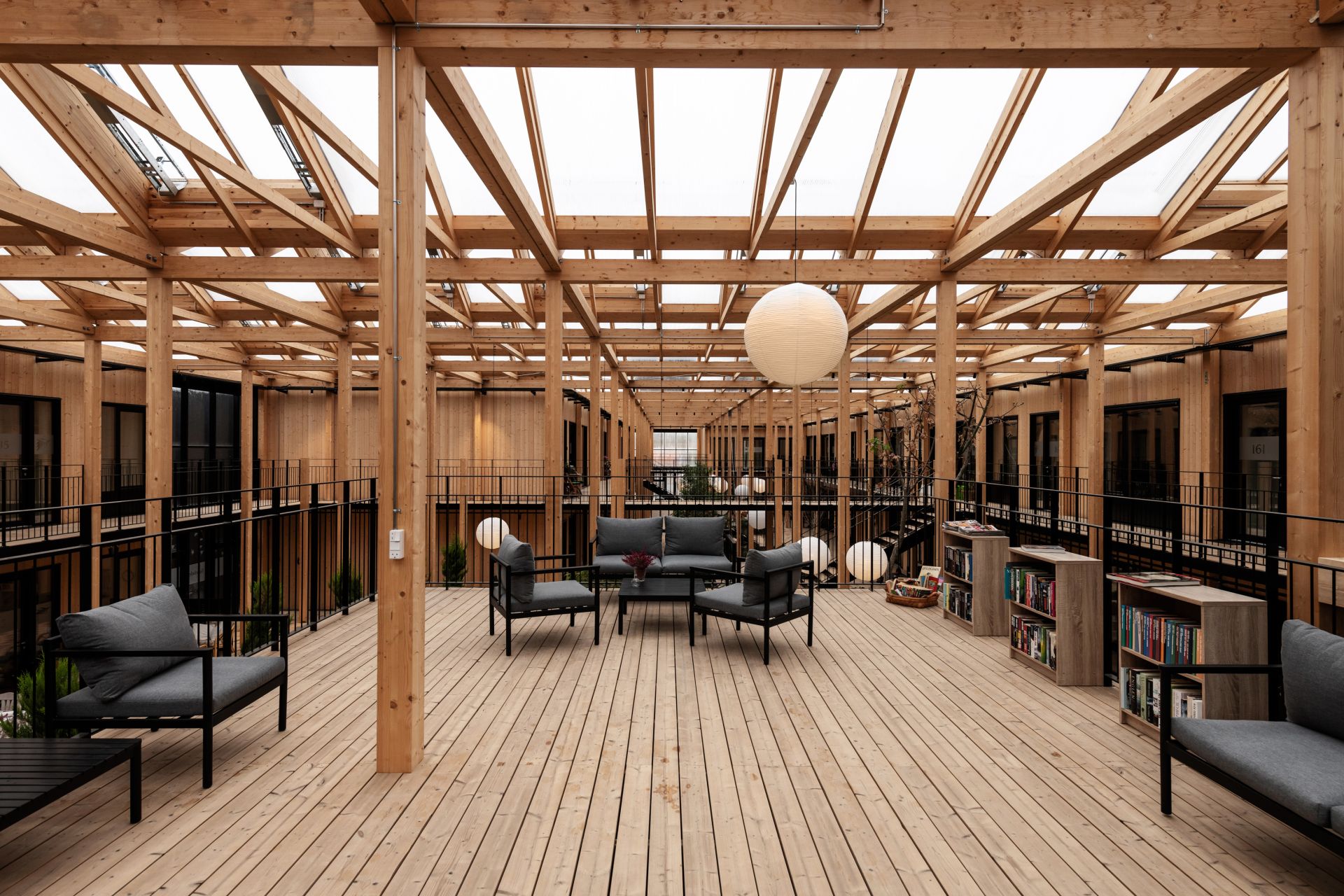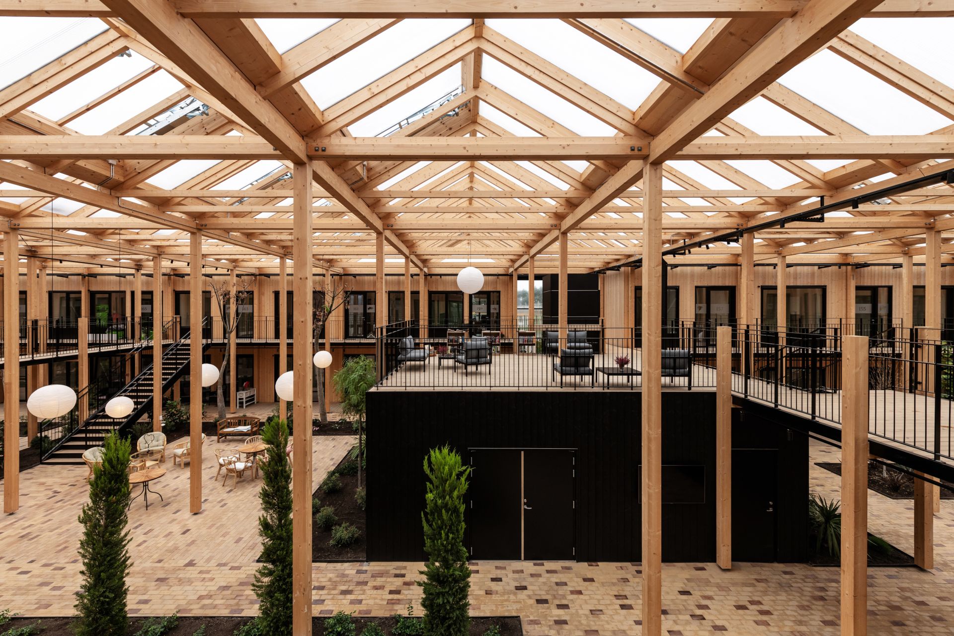 Men det er ikke kun omgivelserne, der gør hverdagen i Hermanhaven grøn. For i hjertet af husene, findes en stor, fælles, overdækket atriumhave.
