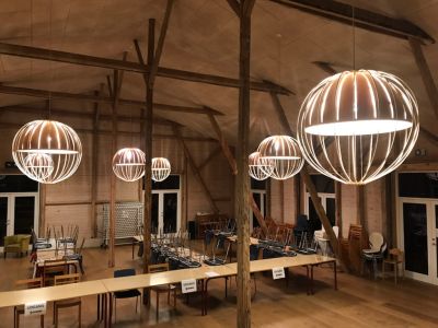 Loen: Fællesskabets hjerte findes i den ombyggede lo, der nu fungerer som spisesal med tilhørende stort industrikøkken. I den smukke sal er der mulighed for fælles spisning alle hverdage. Loen bruges til mange forskellige sociale arrangementer, ligesom den kan lejes til private arrangementer. Fælleskøkkenet producerer alle hverdage mad fra primært egne produkter. Beboerne indgår i madgrupper, der laver mad til hinanden ca 200 dage om året.