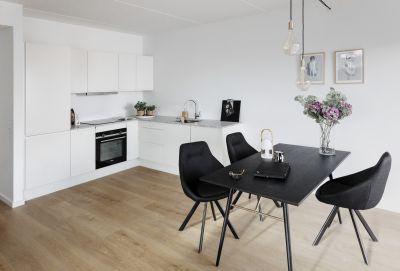I Plushusene i Hedehusene finder du blandede boligtyper. Her er 1-plans og 2-plans rækkehuse samt lejligheder i punkthusene. Alle boligerne har 3 eller 4 værelser. Boligerne er indrettet moderne og funktionelt. Køkkenerne er fra HTH og har hvide, grebfrie fronter. Her er opvaskemaskine, køle/fryseskab, oven med pyrolysefunktion og komfur med induktion. Bordpladen er af granit.