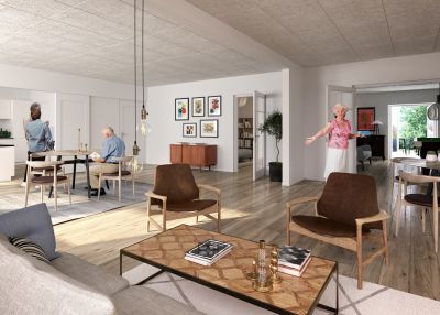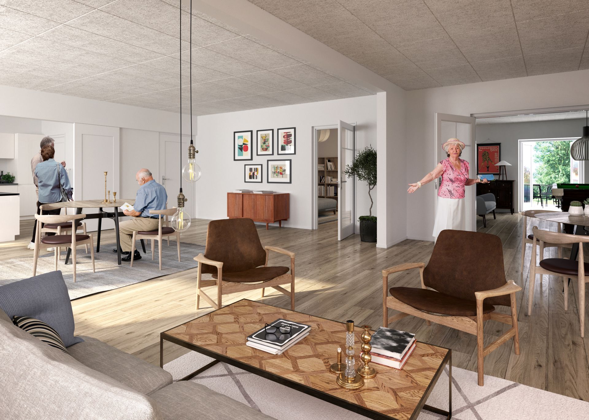 Lejlighederne i Rebild Park er tegnet specifikt til aktive mennesker uden hjemmeboende børn. De er sammen med udearealerne udformet i en smuk arkitektonisk helhed, helt centralt i Skørping.
