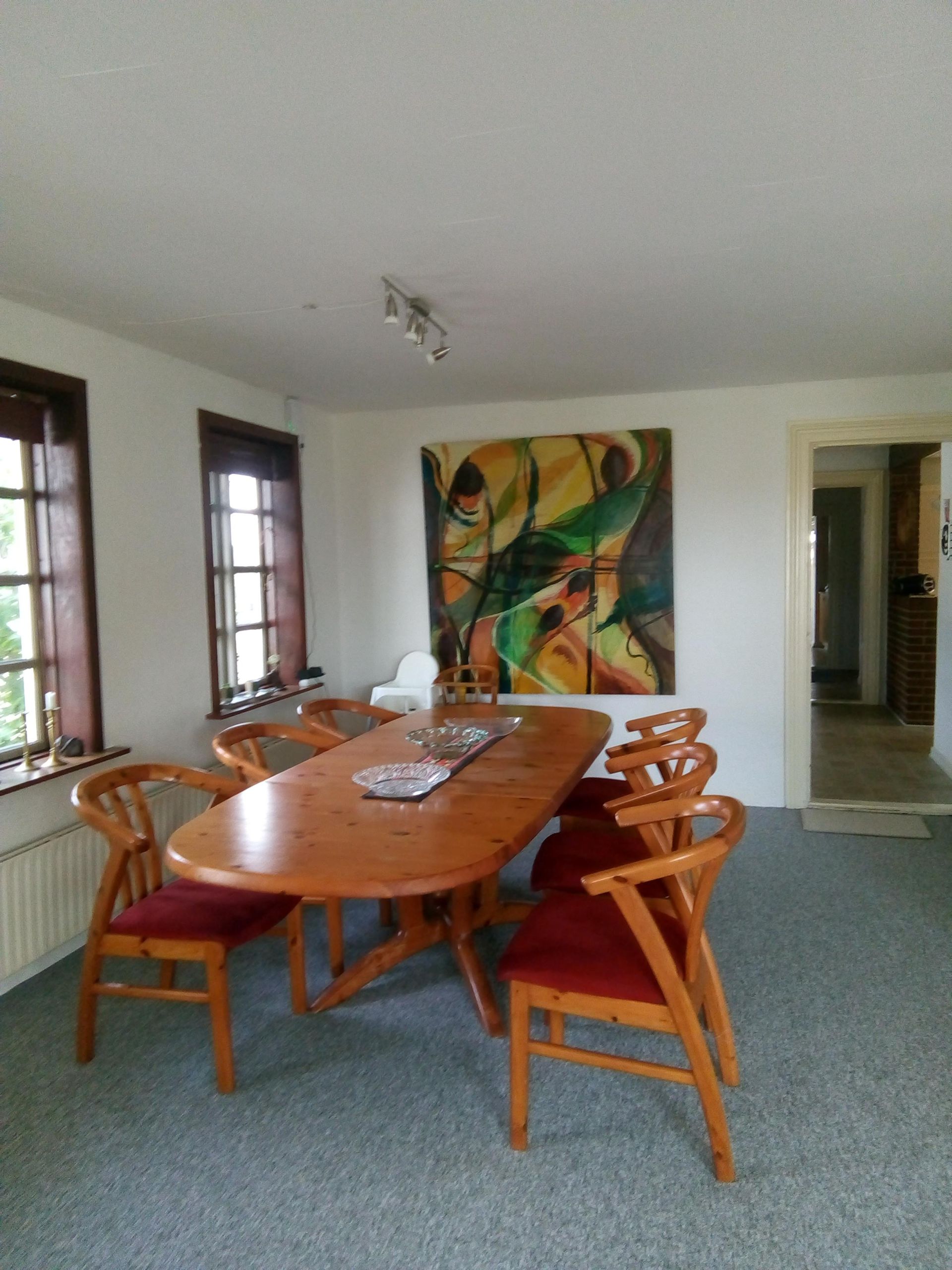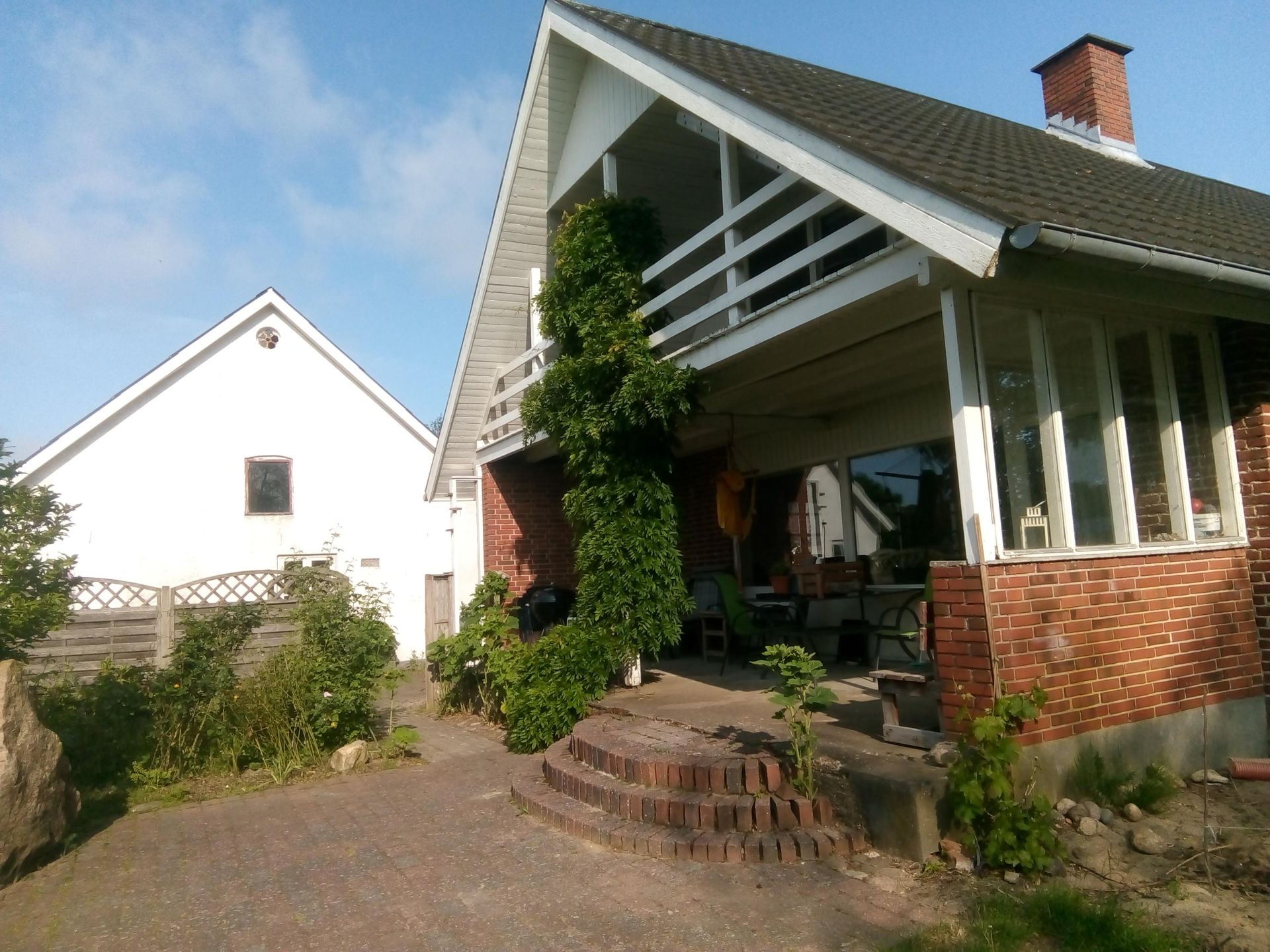 I fredelige og landlige omgivelser mellem Silkeborg og Bjerringbro ligger vores lille bofællesskab/kollektiv for modne mennesker. Vi har boet 3 her, i de to år vi har eksisteret, men huset har 5 soveværelser, hvor vi p.t. har indrettet det ene som bibliotek. Pt. bor vi to kvinder på 60 og 64 og en mand på på 53 år. Vi vil gerne bo 4-5 mennesker her, og det er der rigelig plads til. Stuehuset er på 240 m2 i to plan med overdækket terrasse både ovenpå og nedenunder. Vi deles om bad, to toiletter, stort spisekøkken, grovkøkken, og stor vinkelstue. Haven er stor og spændende indrettet med køkkenhave, gamle æbletræer, græsplæne, hængekøje, et nybygget StormP-drivhus, hønsehus (med 3 høns) og 1 udekat. Pga. allergi kan vi ikke have husdyr indenfor. Derudover er her stor gårdsplads og 800 m2 udlænger med højt til loftet, med værksted og rum til en pladskrævende hobby. Så hvis du drømmer om at skille en bil ad, lave gigantiske skulpturer, bygge en vindmølle eller et tiny house, så er her plads til det.