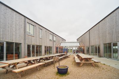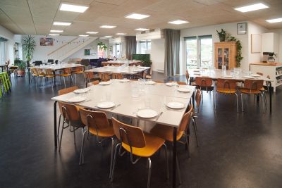 Vi har masser af plads at boltre os på. I midten af vores fælleshus ligger vores smukke orangeri. Til den ene side ligger vores spisesal og køkken, og på den anden side kan du bevæge dig ind i vores dejlige multisal og få motioneret din krop. Multsialen er særlig populær blandt børnene, der tumler og spiller med bløde bolde. På 1. salen findes en hyggelig lounge, et børnelegerum, et krea-rum, et teenagerum, fire gæsteværelser, inkl. badeværelse og et åbent kontor med PC’ere. Desuden har vi vaskeri, depot, grovværksted og toiletter i stueplan.