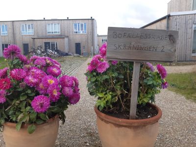 I vores herlige, fælles have er der plantet frugttræer og buske, indrettet skønne hyggekroge, bålsted og terrasser omkring vores fælleshus. I foråret 2023 har vi bl.a. nedgravet to trampoliner bagved vores fælleshus, og vi har fået selskab af nogle høns (i bur). Idérigdommen blomstrer, og det er en igangværende proces, hvad vi mere ønsker, der skal være i vores fælles have – og i vores bofællesskab i det hele taget.