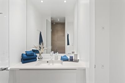 Lejligheden indeholder: Entré med plads til skab eller bænk. Hvidt stilfuldt køkken fra Invita med en stål-bordplade og alle hårde hvidevarer. Flot badeværelse med brus, skuffer under håndvasken og plads til egen vask/tør. (gratis fællesvaskeri findes på 3. sal) Soveværelse med skabe fra Invita. Lejlighedens bedste egenskab er dog stuen med de mange store vinduespartier, den dejlige udsigt og en skøn altan. Dette er en lejlighed, som bare skal opleves!