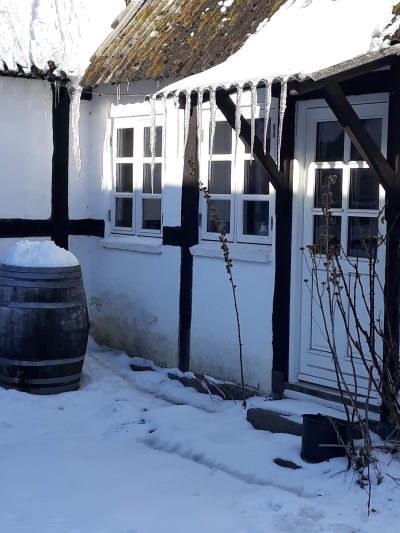 På naturskønne Vestmøn udbydes en ejerlejlighed i et mindre bofællesskab. Aktuelt består bofællesskabet af 4 ejerlejligheder, indrettet i en firlænget gård med bindingsværk. 3 lejligheder anvendes som fritidsboliger, mens den sidste er helårsbolig. Hertil kommer en uudnyttet staldbygning.