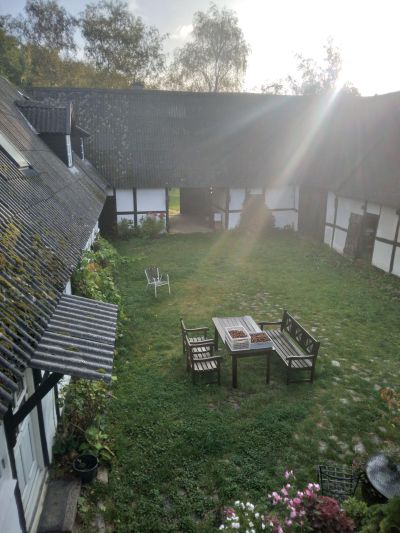 Gården ligger på en stor naturgrund, i alt ca. 2 ha, hvor der er køkkenhave, frugttræer og – buske, lidt skov og en lille sø. Her er masser af udfoldelsesmuligheder, både individuelt og fælles.
