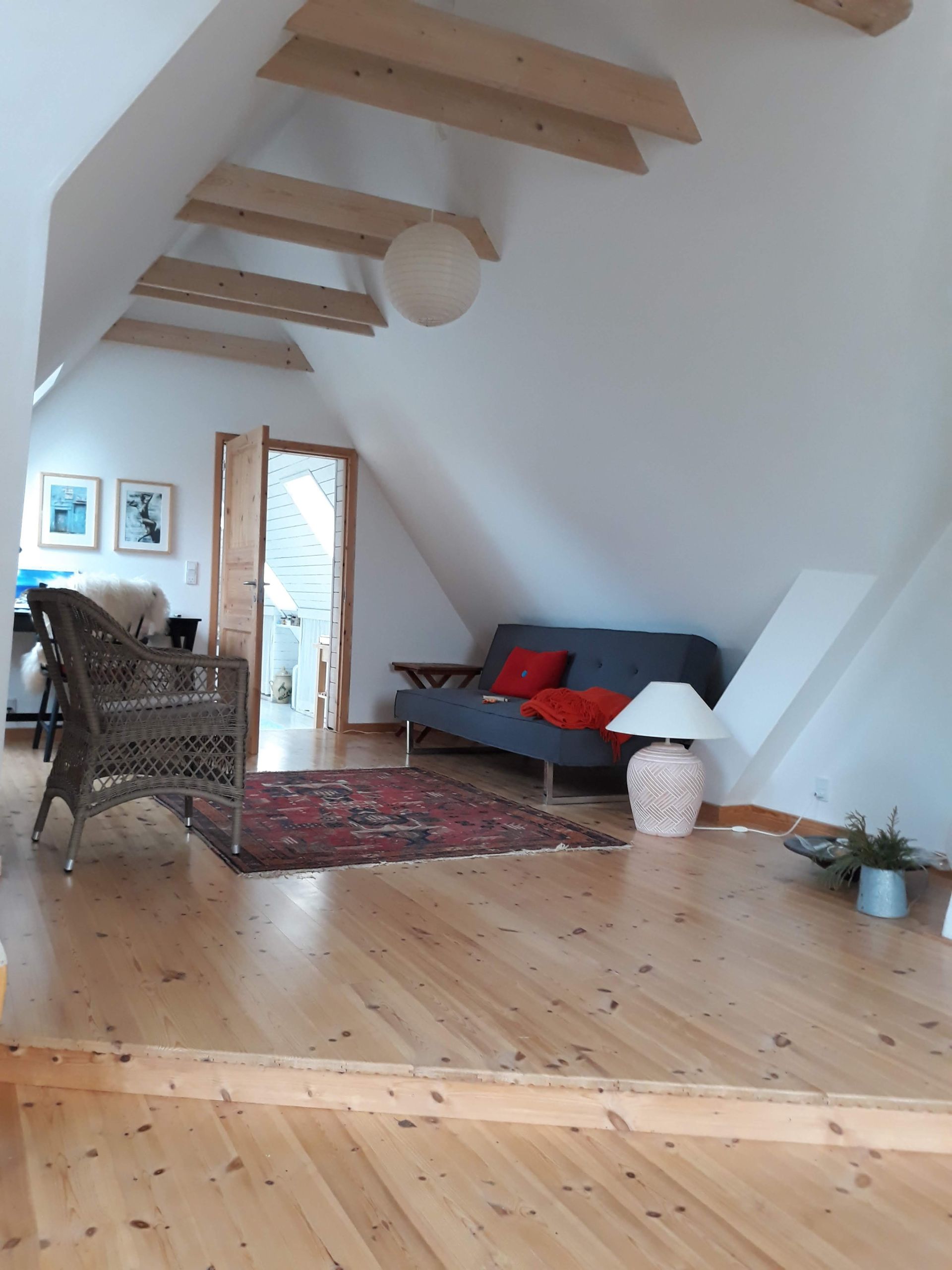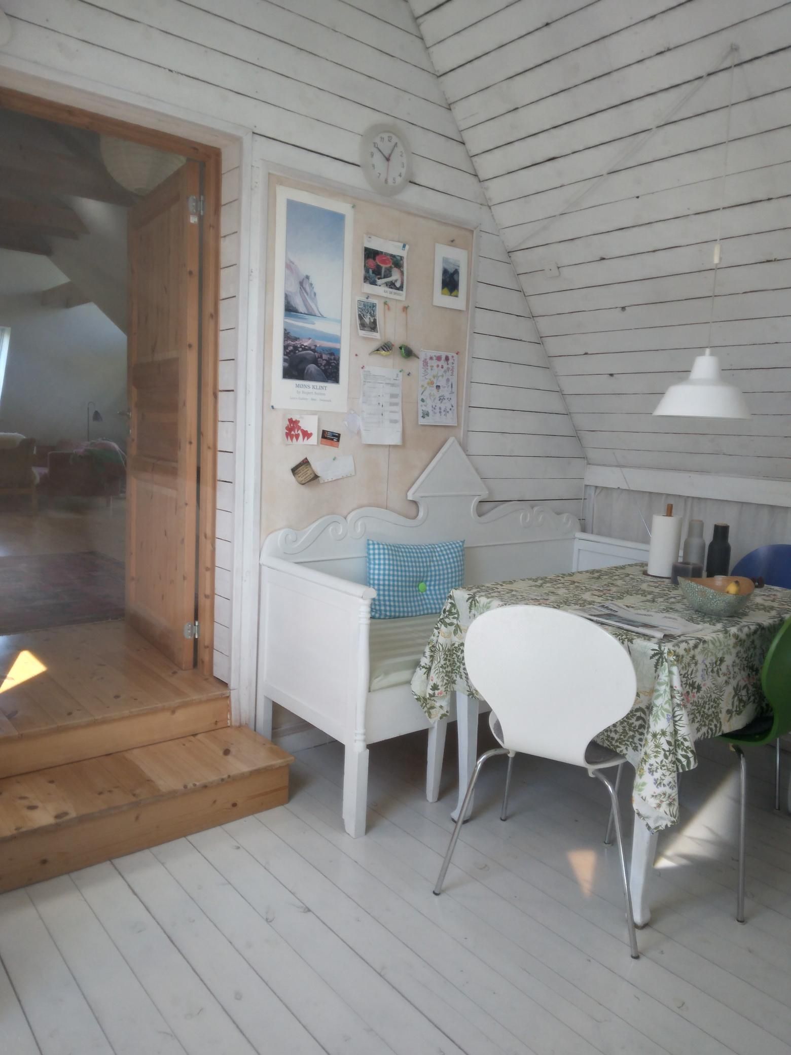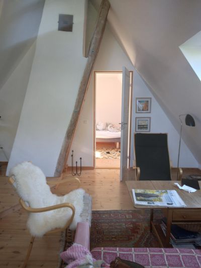 Lejligheden, som er til salg, anvendes pt som fritidsbolig, men kan anvendes som helårsbolig. Den er på 97 m2 og ligger på 1. sal med stor stue med udsigt udover markerne, 2 soveværelser, mindre køkken og et badeværelse. Herudover er der mere end 100 m2 fællesrum med bl.a. et fælleskøkken og et stort værksted.