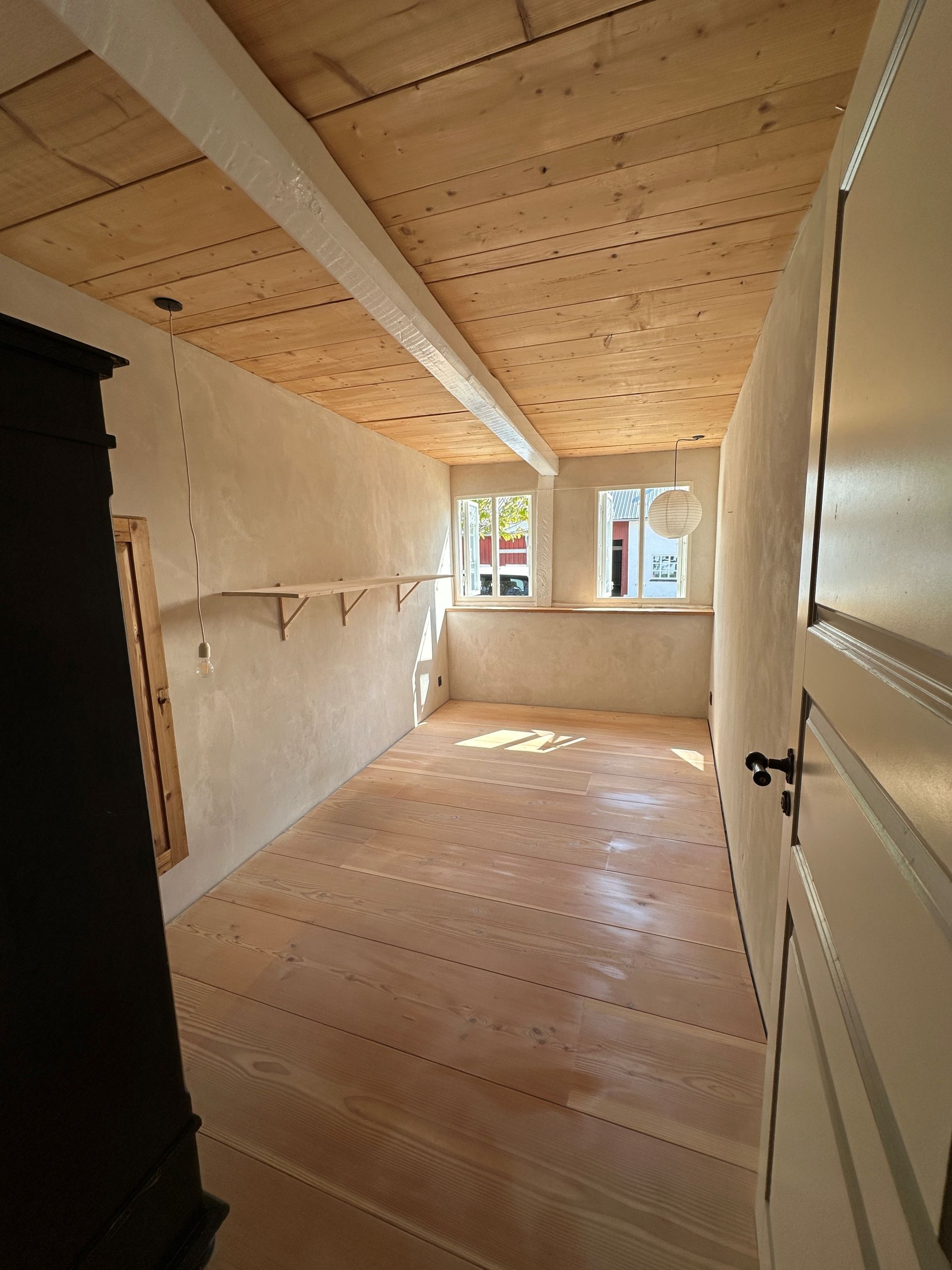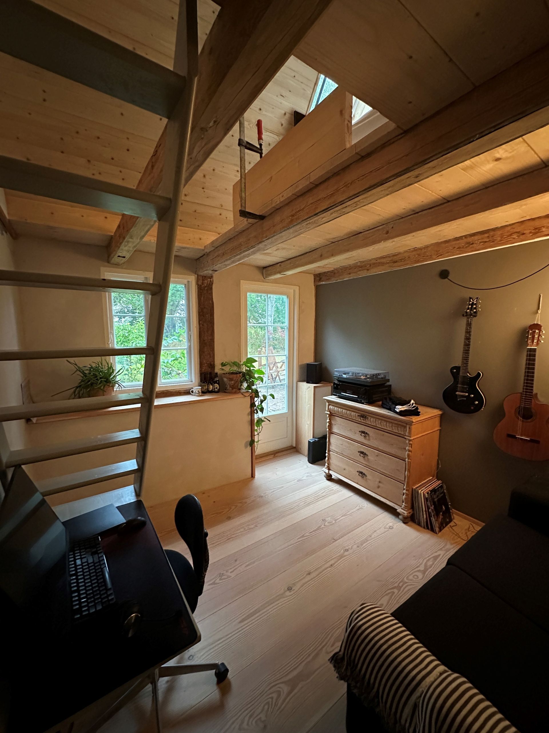 Maglehøjgård er en sjælden, firelænget bindingsværksgård fra 1830 – smukt placeret i landsbyen Marbjerg, præcis dér hvor Roskilde møder Hedehusene. Kun 20 minutter med tog fra Københavns Hovedbanegård åbner landskabet sig, tempoet sænkes. Ejendommen rummer tre selvstændige boliger, hver placeret i sin egen længe – alle med privat have og tydelig rumlig identitet. Her bor man for sig, men aldrig isoleret. Boligen er på 200 kvm, fordelt på 9 værelser. Den er gennemrenoveret i 2020, og indeholder derfor nyt køkken, badeværelser, gulve og lofter. Alt er bygget i bærerdygtige materialer og arkitekttegnet. Den 750 m² store fælles lade fungerer som gårdens hjerte og kreative maskinrum. Her har hver husstand sit eget private område til værksted, atelier eller opbevaring, mens fællesfaciliteterne inviterer til alt fra madprojekter i grovkøkkenet til træning, leg og lange samtaler. Der er plads til trampolin, børne- og ungdomsrum – og til de projekter, der endnu ikke har fået et navn. Udenfor leves livet i det fri. Vi samles omkring bålpladsen, dyrker økologiske grøntsager, passer høns og bier og høster frugt fra gårdens mange træer. Maglehøjgård forener arkitektur, natur, fællesskab og frihed – og hvor man kan leve tæt på naturen uden at give slip på byen