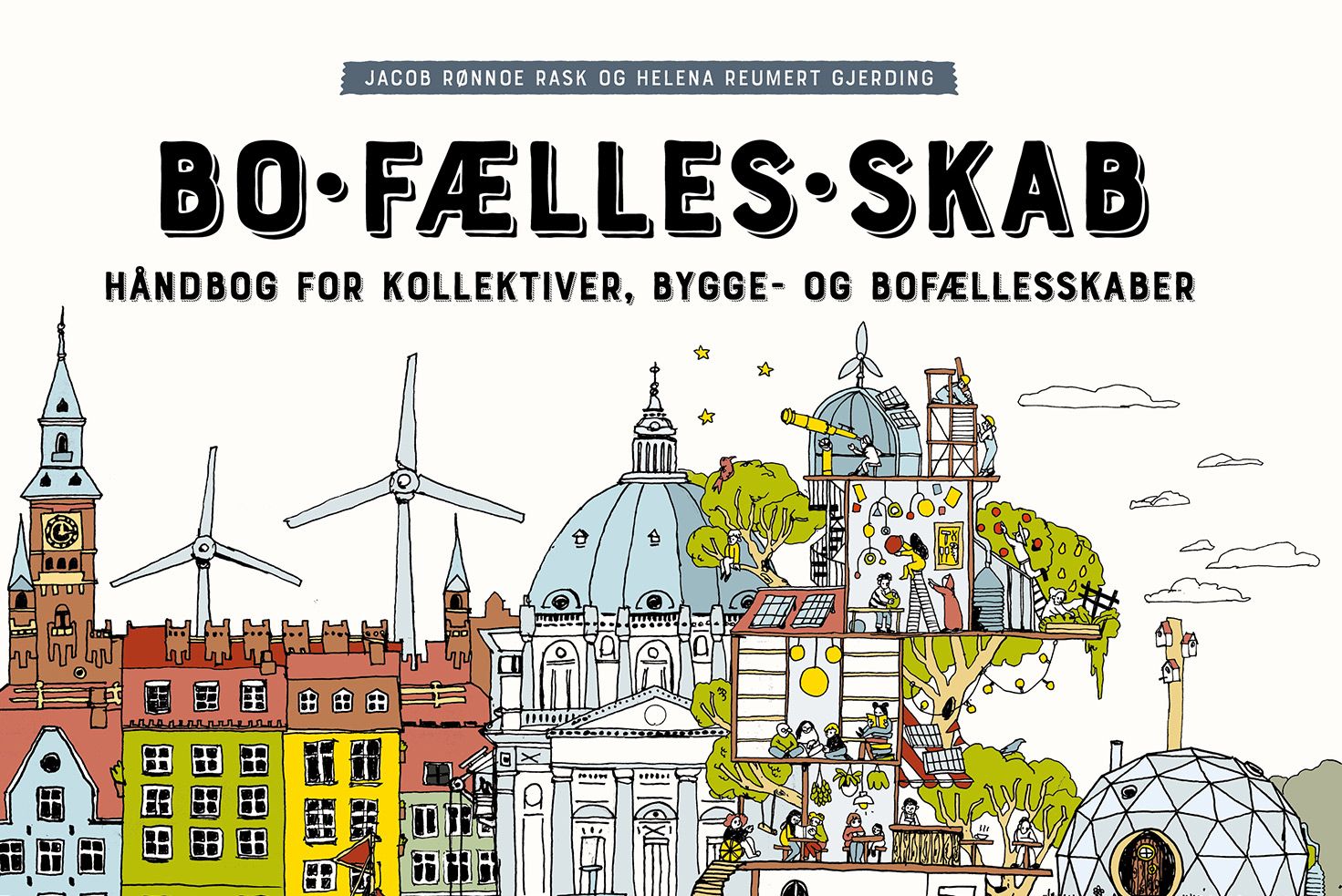 Bogens titel er "Bo.Fælles.Skab - Håndbog for kollektiver, bygge- og bofællesskaber”