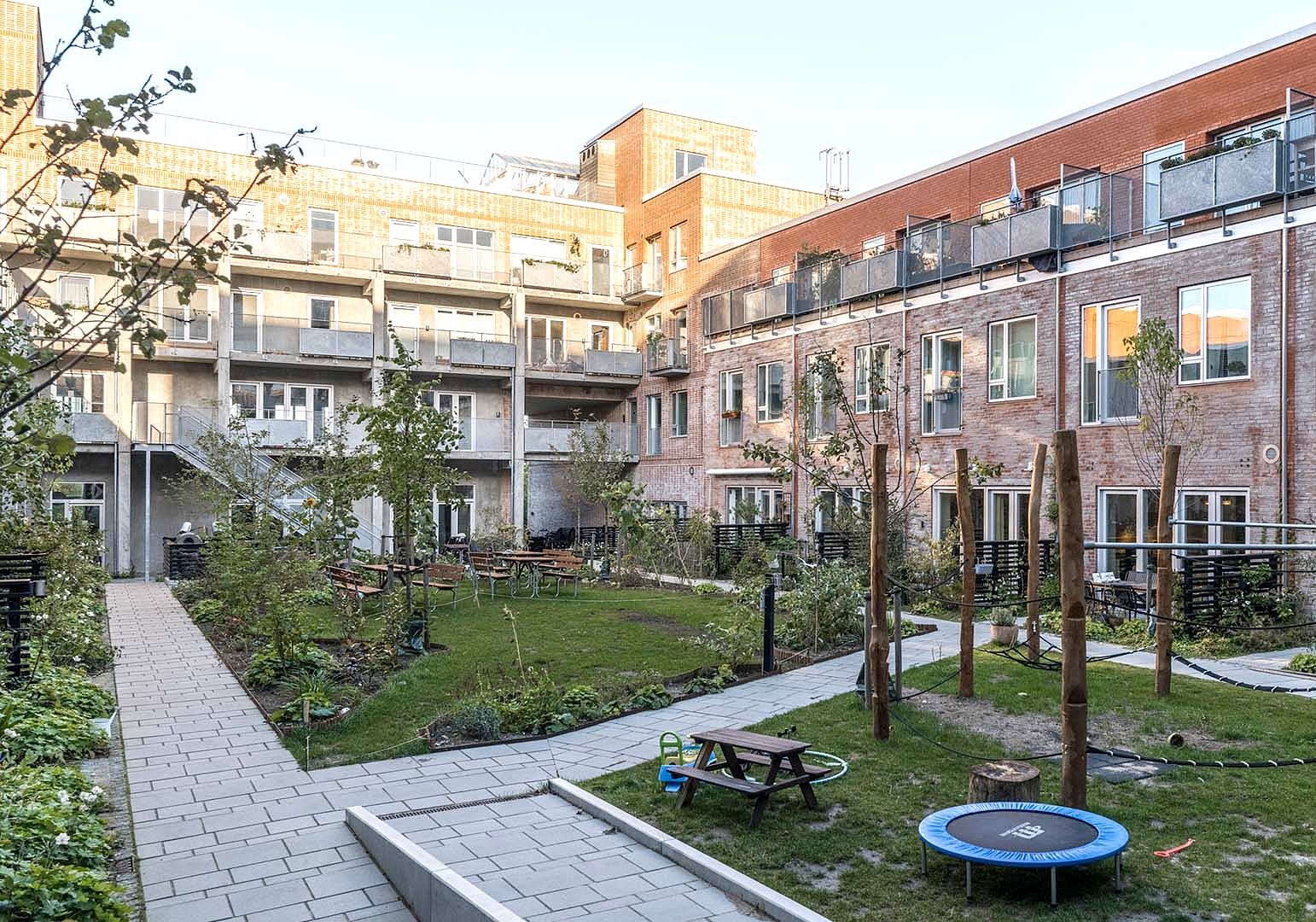 Bebyggelsen som helhed er ikke et bofællesskab, men det er visionen, at kvarteret samlet set skal baseres på fællesskab. De planlagte ejer-bofællesskaber kommer til at omfatte i alt seks bygninger med 48 ejerlejligheder i alt, tre af disse i byggeriets første fase. Måske ikke voldsomt i forhold til det samlede antal lejligheder i området, men en interessant udvikling, fordi det normalt er svært at bygge bofællesskaber i storbyen.
