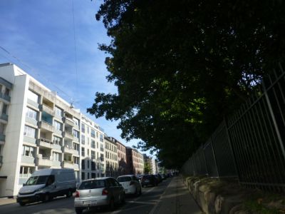 Området er absolut fredeligt og ejendommen ligger attraktivt tæt på carlsberg byen der er næsten bygget færdig. tæt på Zoo, Frederiksberg have og de Små haver på Pile Alle. Der er udsigt til Søndermarken der ligger lige overfor ejendommen og fra bagsiden af huset er udsigten til haven og nabo ejendommenes haver. Fin grøn beliggenhed. Busstoppested 2 min. fra ejendommen. Metro 10 min. gang til Frederiksberg alle station.