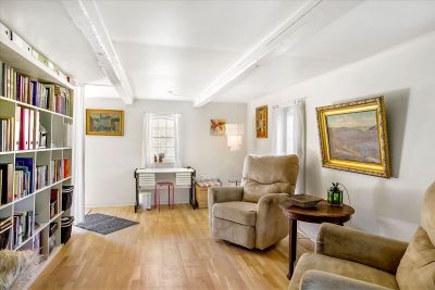 Stuen har indbygget pejs med brændeovnsindsats og fortsætter videre til mindre stue / værelse adskilt af dobbelte franske døre.
