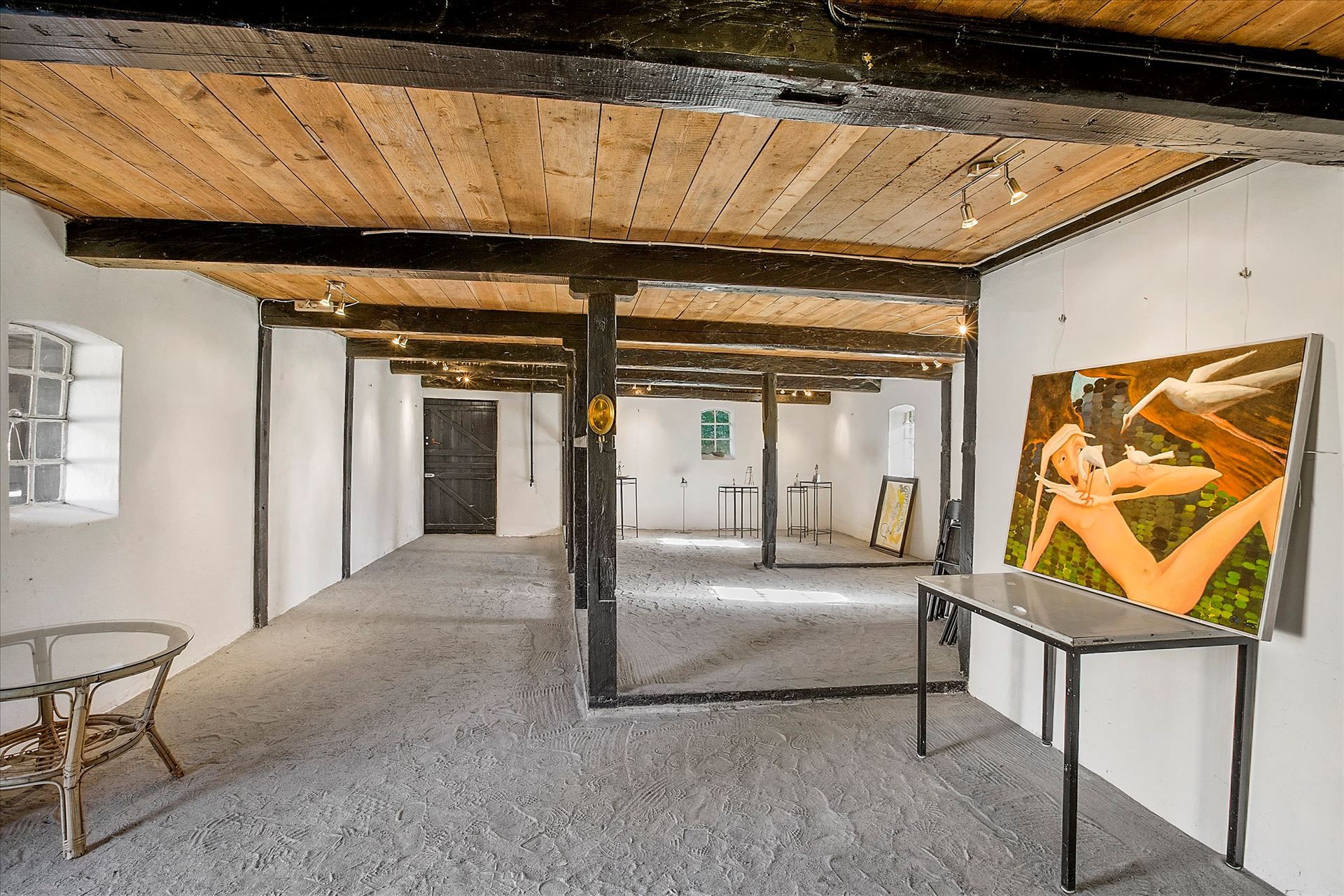 I den største længe er der stort uopvarmet fællesrum i den tidligere hestestald. pt. brugt som galleri, port indtil den idylliske gårdsplads, (som er skærmet imod al trafikstøj), uudnyttet disponibelt rum, (perfekt kommende stort fælles værksted, opholdsrum, andet ???), hvor brændeovn kan tilsluttes eksisterende skorsten, -fyrrum med Stokerfyr, silo til træpiller, som føres til fyret med snegl samt et stort uudnyttet rum i den tidligere lade. Herfra stor dobbelt ladeport ud mod have.