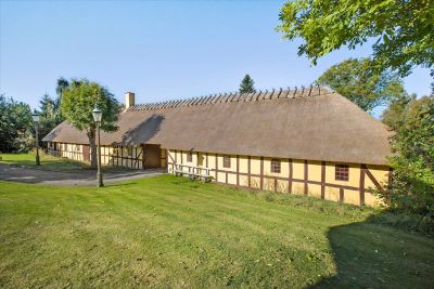 Ejendommen som er fra 1770, fremstår velholdt og smuk og er pt. opdelt i to separate boliger fordelt på hovedhus på 255m2 (stort fælles bryggers er regnet med herunder) og tidligere aftægtsbolig på 75m2.