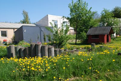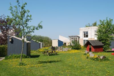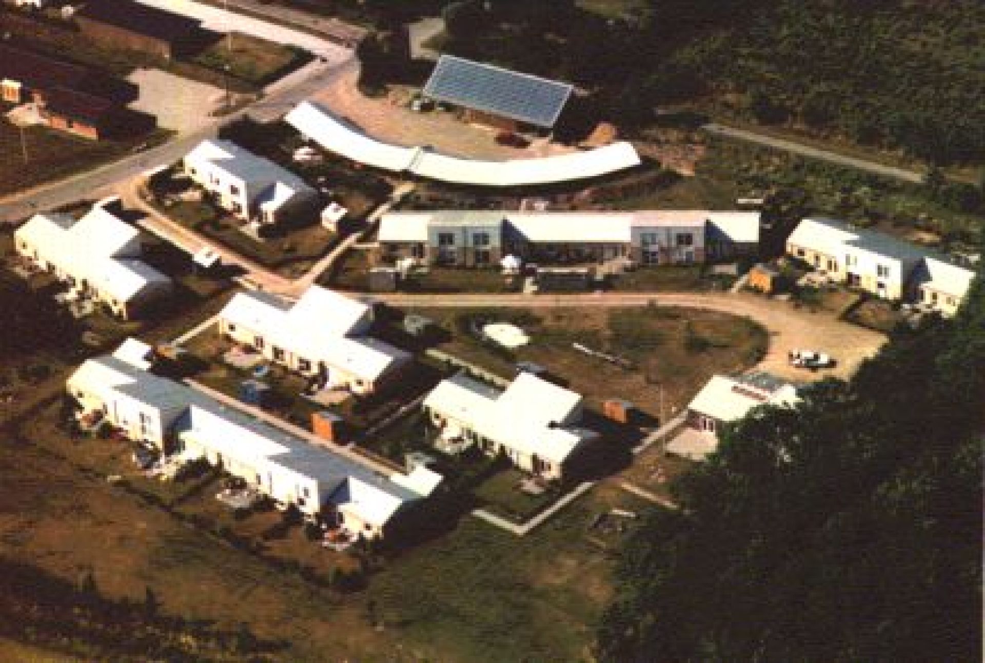 Hver bolig er et fuldt fungerende hus omgivet af en lille privat have. Herudover har vi også et fælleshus med køkken, opholdsrum/spisestue, børnerum, vaskeri og værksted samt store udenomsarealer omfattende græsplaner, boldbane, legeplads, en lille skov og parkeringsplads med carporte.