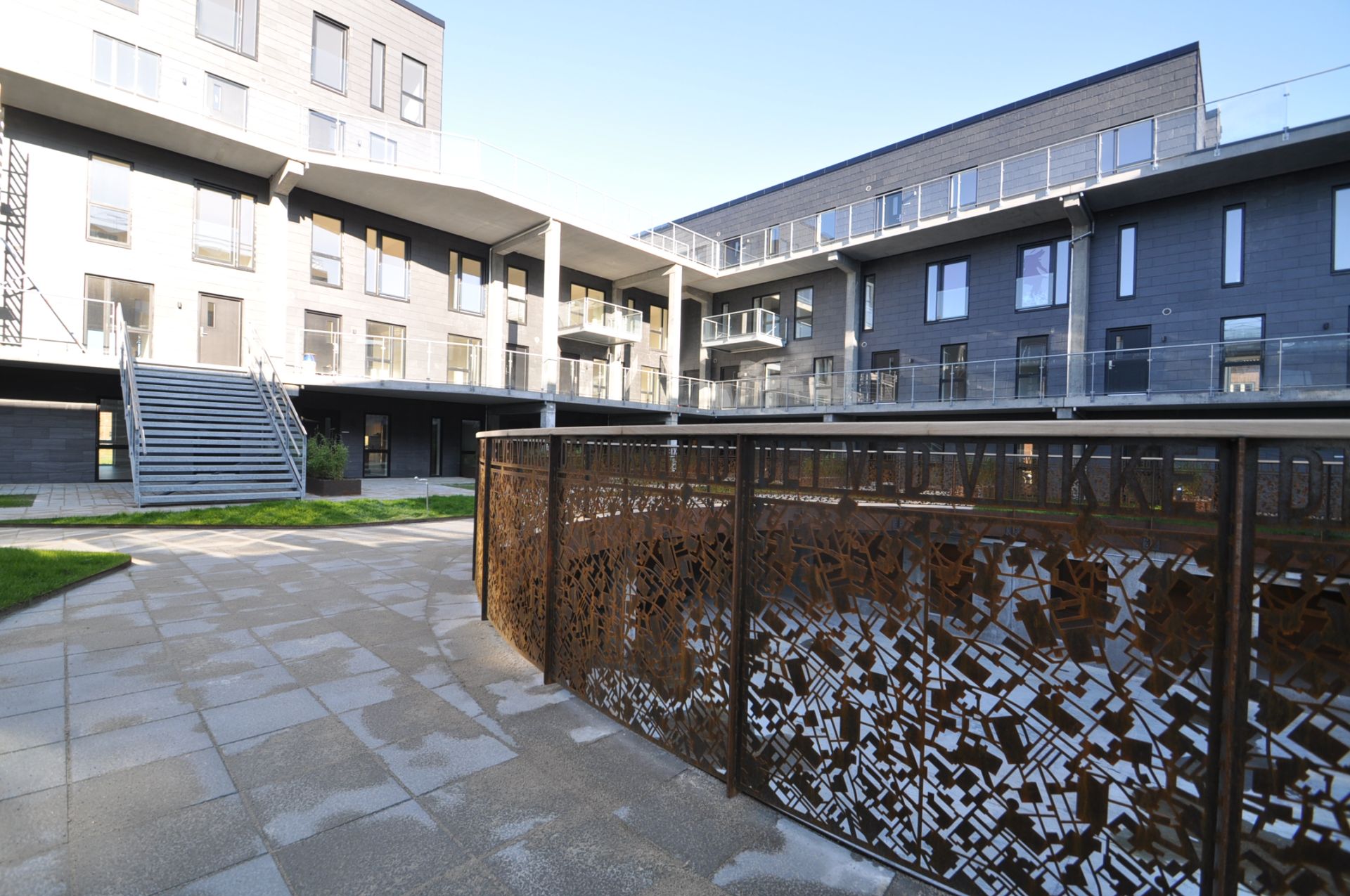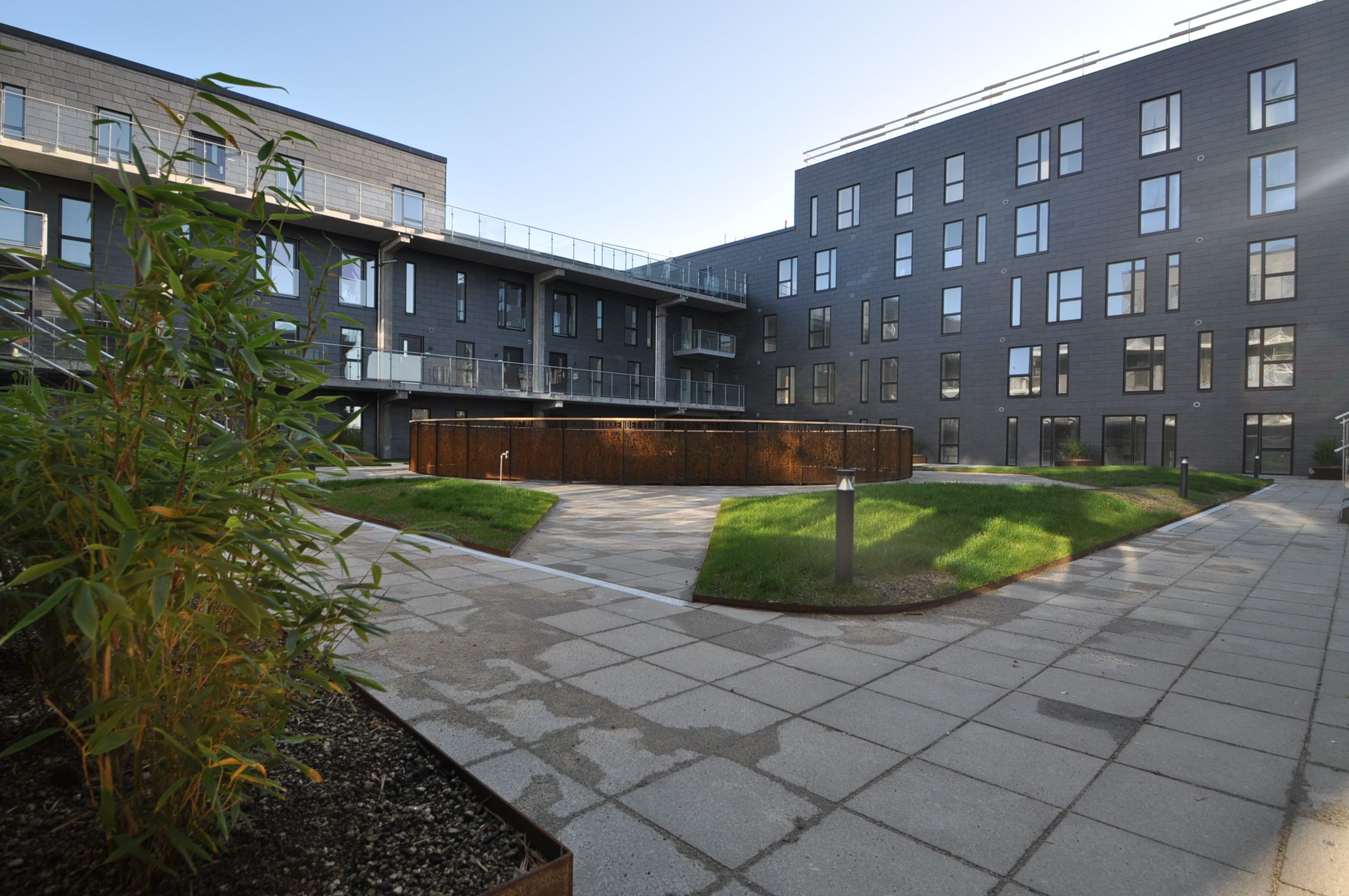 Byggeri i Kanalbyen og lige for enden af kanalen. I byggeriet er der et plans seniorboliger, 2 plans lejligheder og private lejligheder.