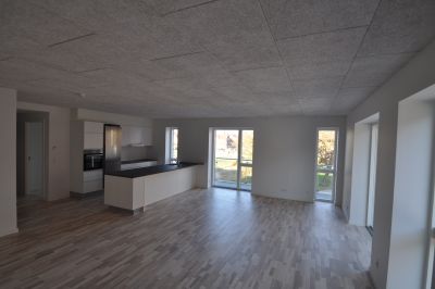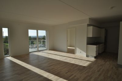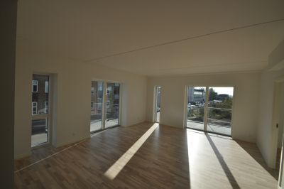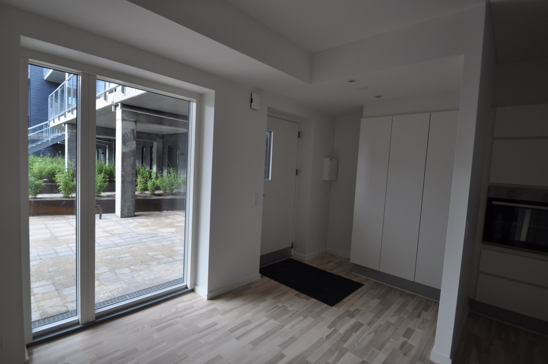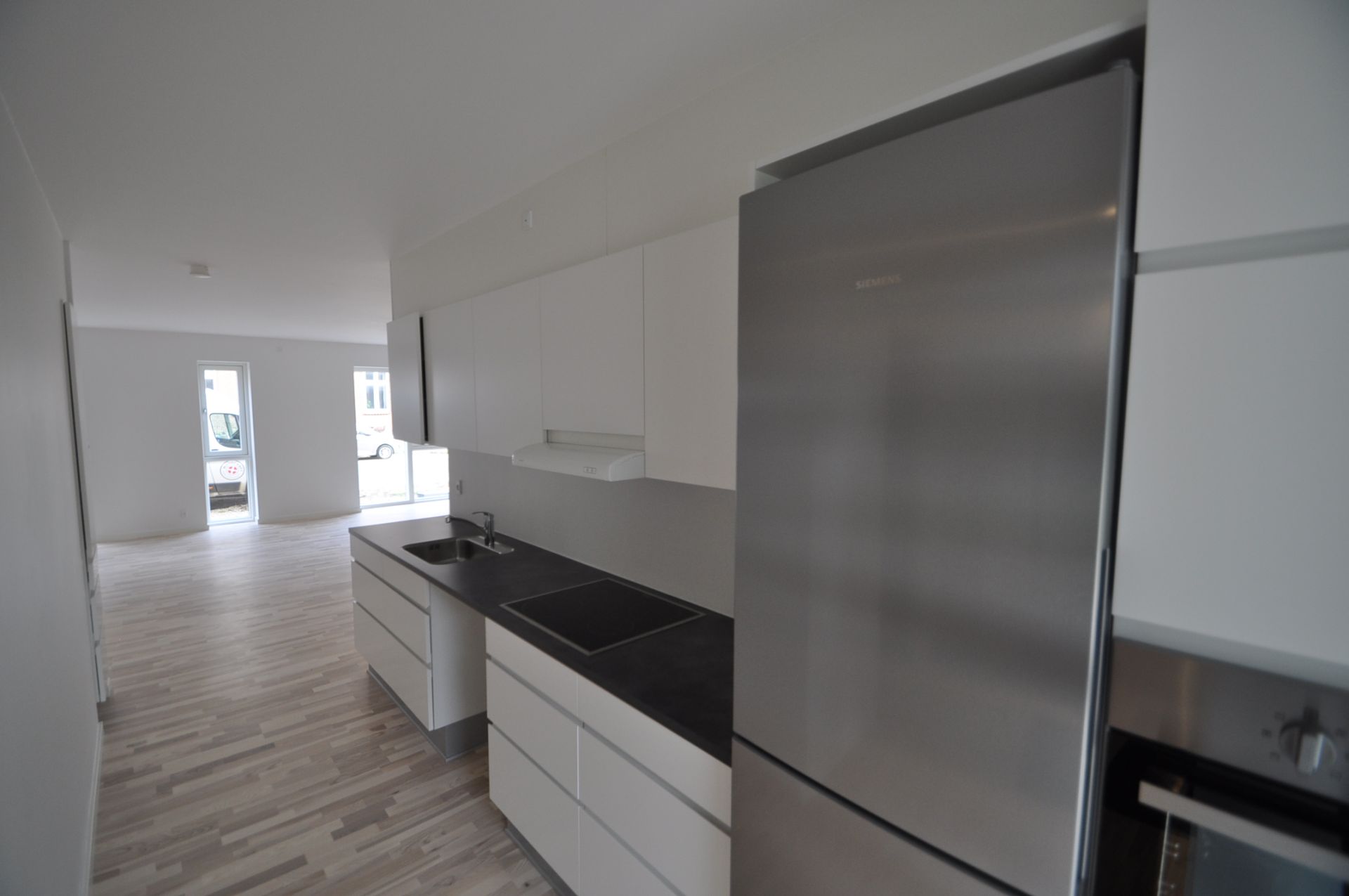 Boligerne er med et hvidt grebsfrit køkken fra Svane og der er lagt stor vægt på masser af skuffer, induktionskogeplade, indbygningsovn og køle-/fryseskab.
