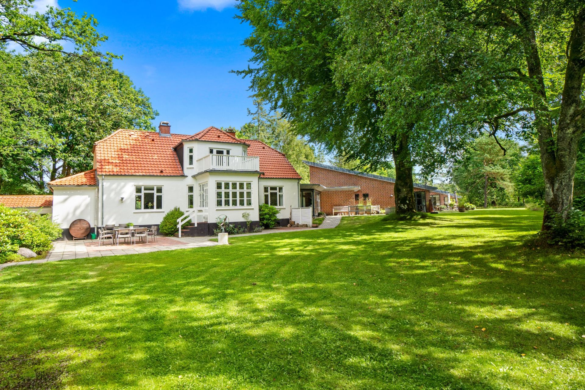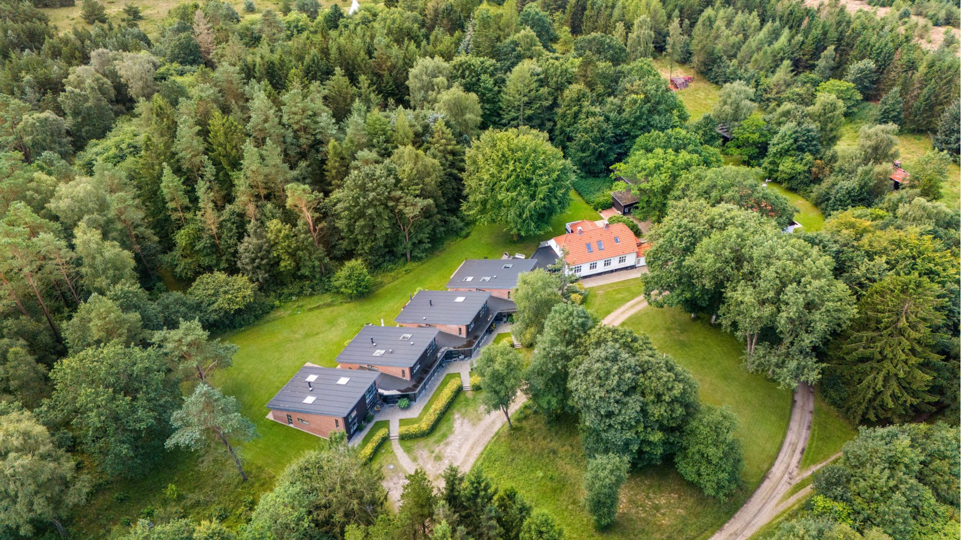 Her er et flot og harmonisk sammenspil mellem naturen og bygningerne som ligger rundt på grunden. Sammenholdt med den gl. hovedbygning og overgangen til de 4 flotte boliger er udført arkitekttonisk perfekt. De 4 boliger fremtræder med hver deres personlige særpræg og indretning, hvilket giver hele ideen med fælleskabet endnu mere liv.