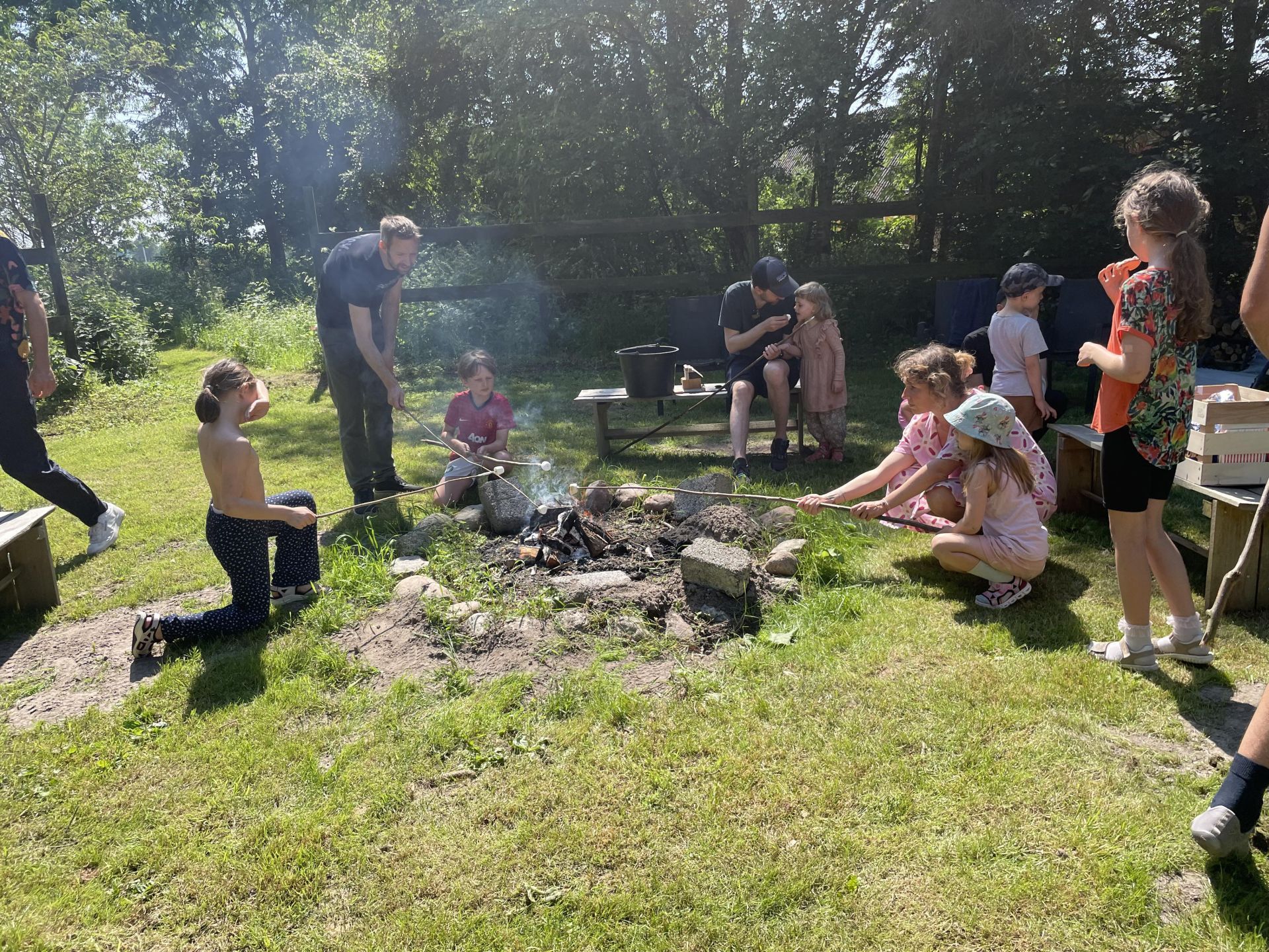 Fællesskabet: Fællesskabet består af Anna og Kasper og deres børn, Vilhelm (7 år) og Liva (5 år) samt Mette og Bjarke og deres børn, Anker (5 år) og Svend (2 år). Børnene leger sammen på kryds og tværs og render tit rundt på vores store grund og er optagede af spændende lege. Vi spiser jævnligt sammen (især om sommeren). Derudover holder vi børnefødselsdage i fællesskabet. Vi har en månedlig arbejds-/fællesdag og et månedligt ”gårdmøde”, hvor større beslutnin ger i fællesskabet træffes. Gården har 5 hektar jord, der primært er eng. Læs mere her: https://xn--bofllesskab-c9a.dk/bofaellesskaber/bofaellesskaber/1466-lille-hyldeborg