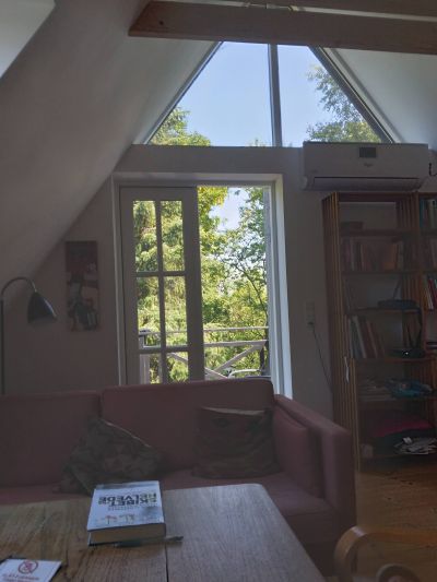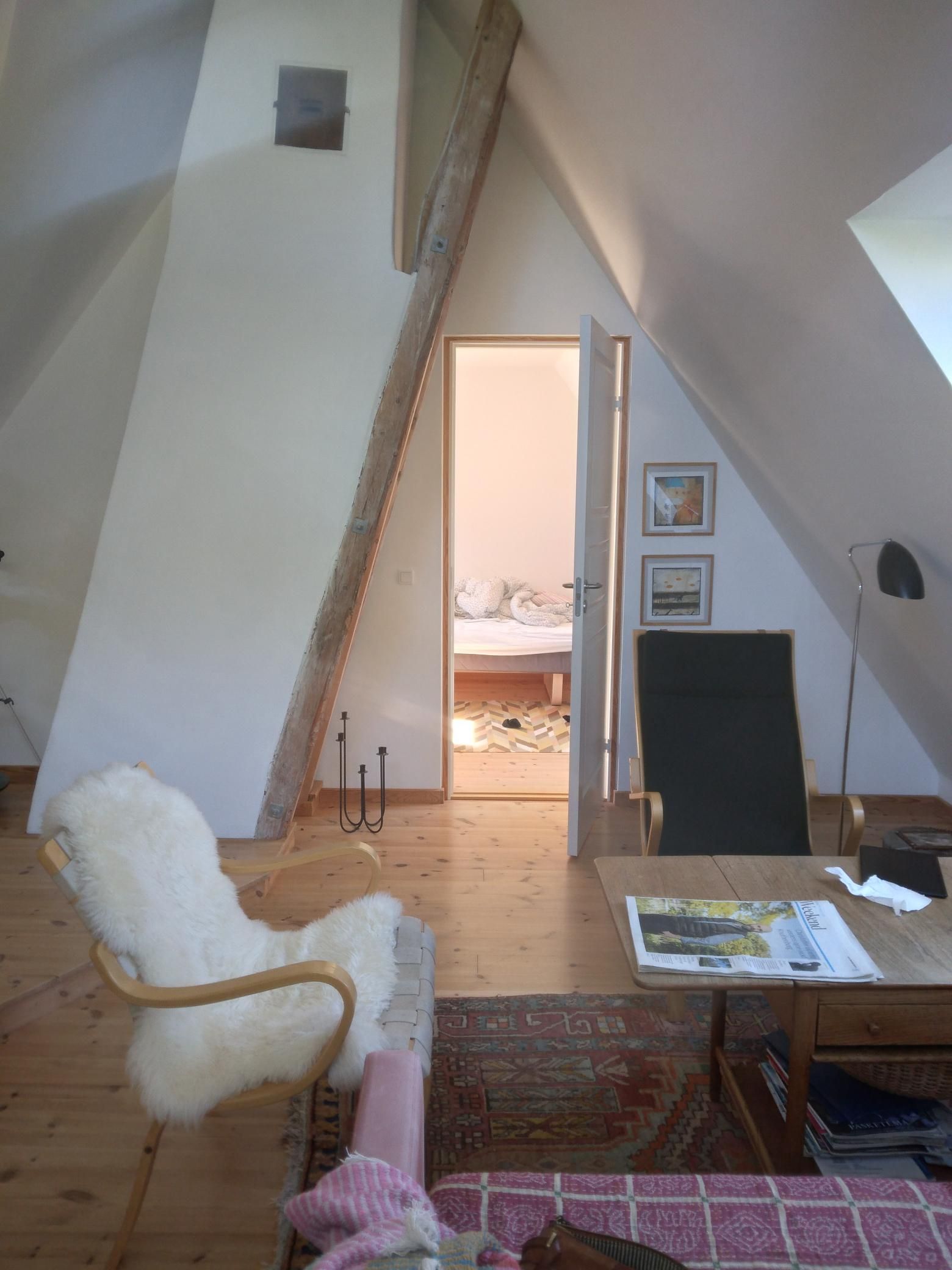 Lejligheden, som er til salg, anvendes pt som fritidsbolig, men kan anvendes som helårsbolig. Den er på 97 m2 og ligger på 1. sal med stor stue med udsigt udover markerne, 2 soveværelser, mindre køkken og et badeværelse. Herudover er der mere end 100 m2 fællesrum med bl.a. et fælleskøkken og et stort værksted.