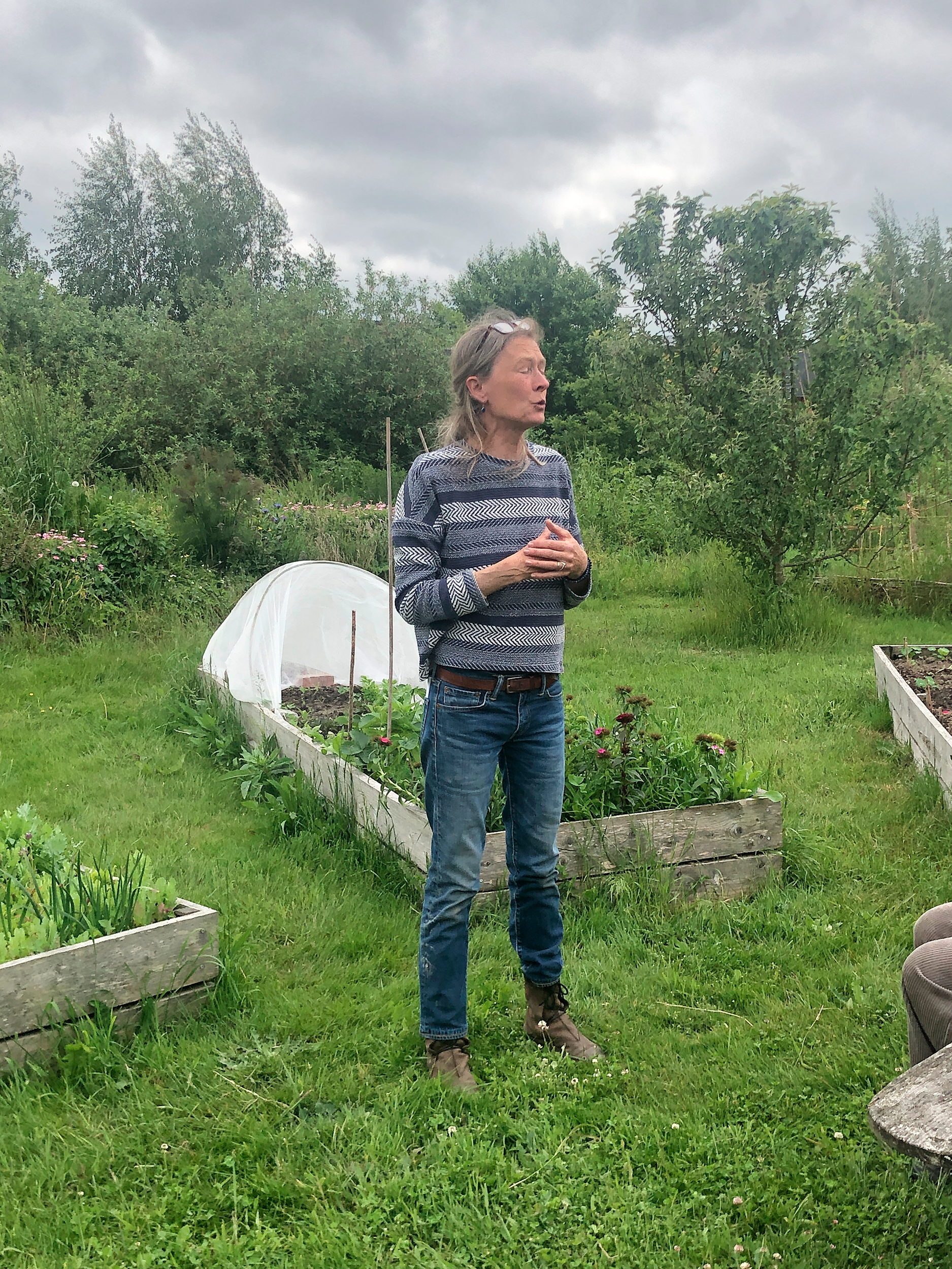 Der var cirka femogtyve deltagere, hvilket var et pænt stort antal. Marianne tog imod ved indkørslen til Køge Fælles Jord, som stedet overordnet hedder, og gik herefter i gang med at fortælle om oprindelsen af ideen og hvor projektet står i dag.