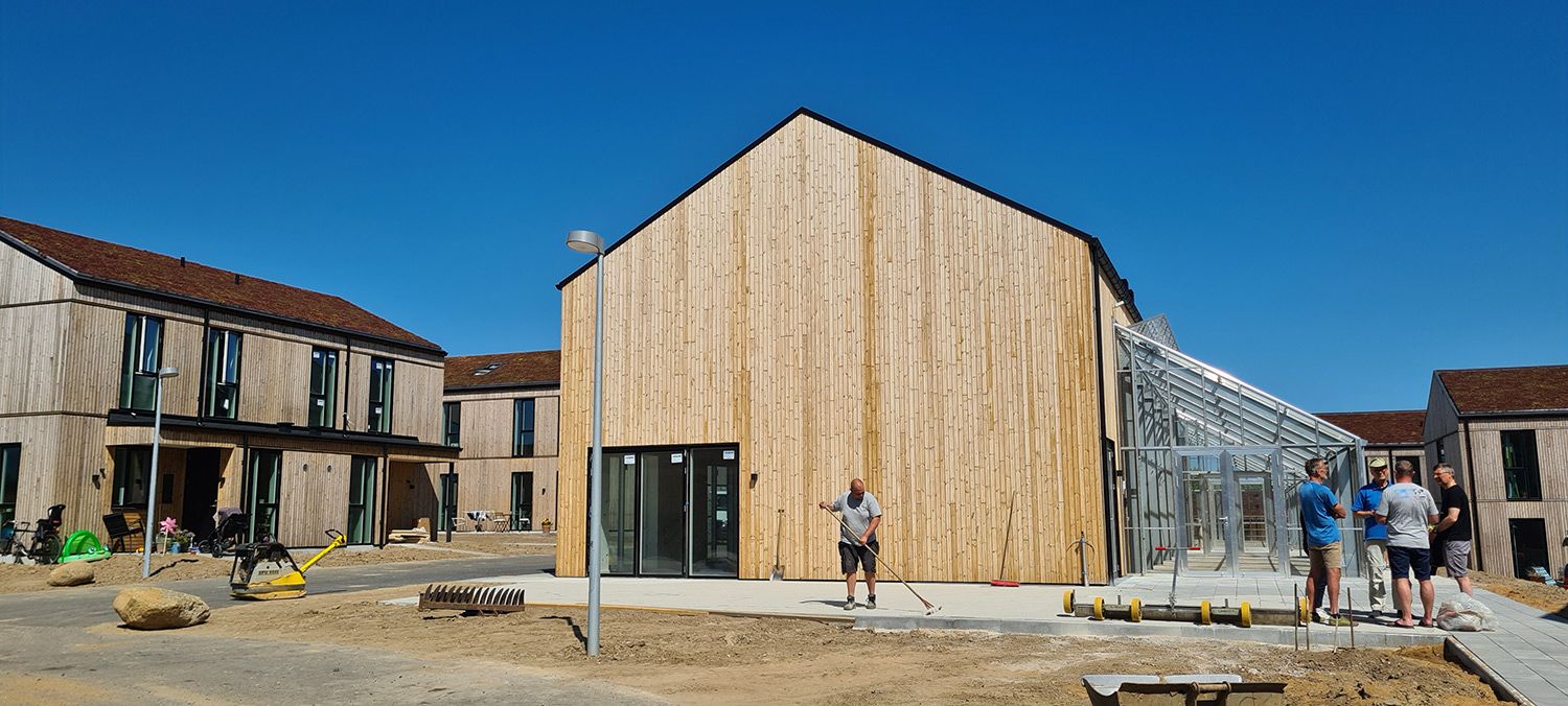 I dagene op til sommerferien 2023 afleverer Thybo de sidste 10 ud af 58 boliger til de kommende beboere. På en almindelig dag, deler 60 håndværkere pladsen, og anlægsgartnerne runder udearealerne af med insektvenlige hjemhørende blomsterblandinger. I midten af bebyggelsen, markerer det store fælleshus sin betydning for fællesskabet, med en bygningskrop der to steder glider over i et væksthus på i alt 150m2.